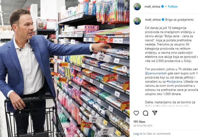 – Došao sam ovde u market na Dorćolu da vidim da li su sniženja urađena, koji su to proizvodi, da li ih ima i na kraju krajeva da vidimo koliko može građanin Srbije da uštedi s obzirom na ta sniženja. Kada sam sabrao i kupio svih ovih 16 koji su označeni kao “Bolja cijena” proizvoda ukupan račun iznosio je 1.493 dinara,a da nema sniženja ovaj račun bio bi 2.644 dinara, rekao je Mali za Tanjug.