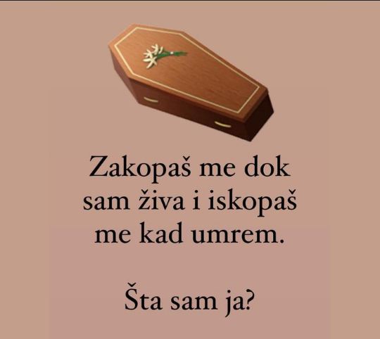 Rješenje mozgalice “Zakopaš me dok sam živa i iskopaš me kad umrem. Šta sam ja?” je