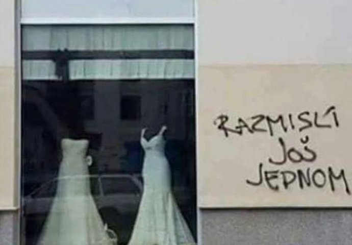 Pogledajte poruku koju je neko ostavio na zidu pored salona vjenčanica.