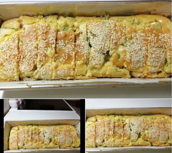 3 jajeta,100 ml ulja,200 ml jogurta,1 kašičica soli,1 prašak za pecivo,10 kašika palente,10 kašika brašna-tip 400,100 gr blitve,100 gr sira-1 kocka,2 kašike ajvara,malo šunke,susam.peći na 180c 30 min.