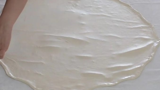 Stavite razvaljane, nauljene i odmorene loptice, jednu po jednu, na radnu površinu,, i počnite pažljivo razvlačiti na sve strane.
