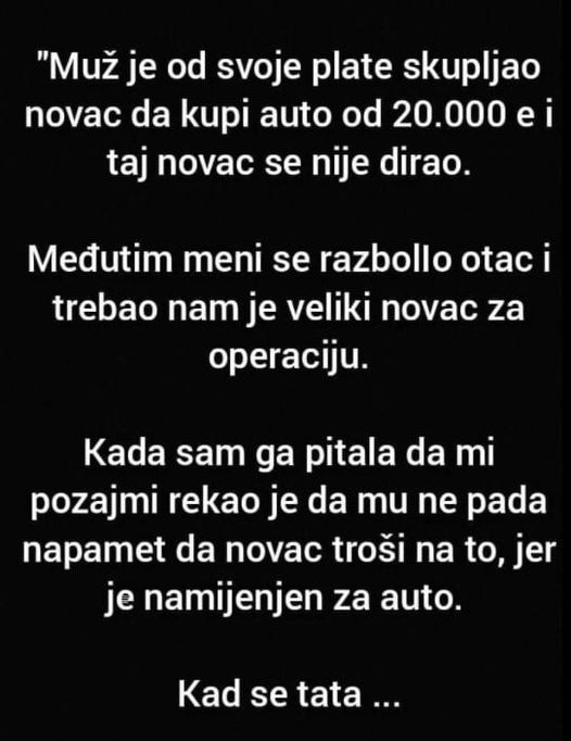 “Muž je od svoje plate skupljao novac da kupi auto od 20.000 e i taj novac se nije dirao.