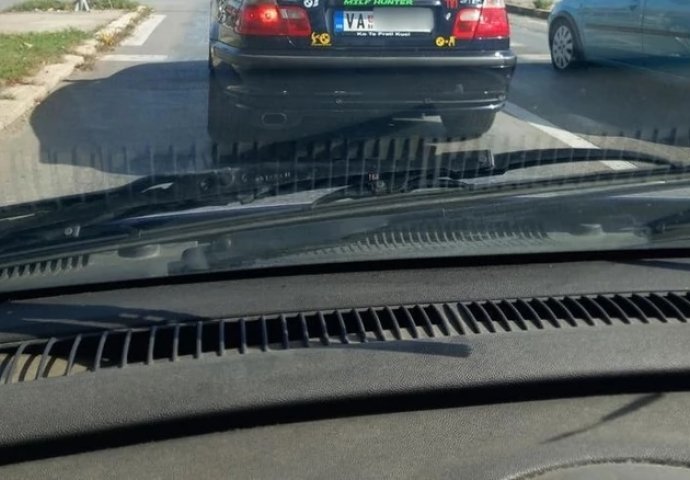 BMW se zaustavio ispred sa valjevskim tablicama i imali smo šta i da vidimo. Iznad registracije je zelenim, upečatljivim slovima ispisano “MILF hunter” što u slobodnom prevodu znači “lovac na majke s kojima bih spavao” (da se ne izrazimo vulgarnije, znamo svi šta je MILF).