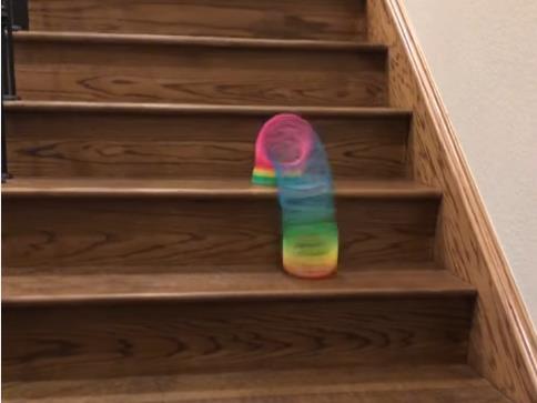 Šarena ili metalna opruga popularno nazvana “slinki” dizajnirana je i prodavana 1940-ih. Izumitelj je slučajno srušio oprugu s police i gledao je kako ‘šeta’ niz knjige, do stola, a potom do poda, gde se uredno smotala.