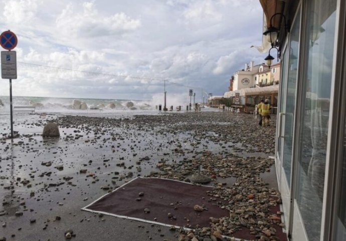 U međuvremenu snažni vjetrovi i ogromni valovi izazvali su u petak uveče pustoš u Piranu, jednom od najživopisnijih slovenačkih primorskih gradova. Uništeno je nekoliko lokala u blizini mora, dok su pojedine ulice zatvorene za saobraćaj.
