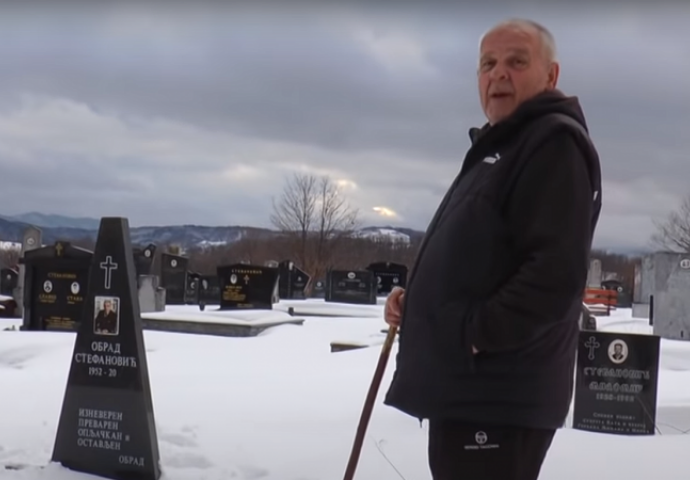 “Opljačkan, prevaren, izdan i ostavljen” piše na ploči koju je živ čovjek Obrad Stefanović podigao sam sebi.