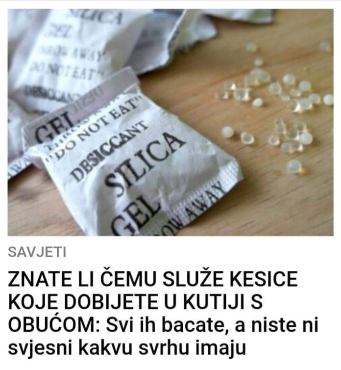 Mnogi ne razumiju svrhu kesica sa kuglicama koje se dobijaju u kutiji sa kupljenom obućom.Nebrojeno puta ste vidjeli ove kesice. Obično se dobijaju u kutiji sa obućom koju ste kupili i retko ko uopšte obrati pažnju na njih. Ako volite obuću da čuvate u kutijama, onda kesice najvjerovatnije tamo i ostanu, ukoliko ih niste bacili odmah po otvaranju. Ipak, da li ste ih ikada isprobali, znate li čemu su namijenjene i kakvu korist imaju? U ovim kesicama se nalaze kuglice od silikona.