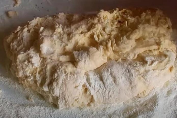 Umesiti testo koje će biti malo ređe. Dodajte još malo brašna, tek da se ne lepi za ruke.