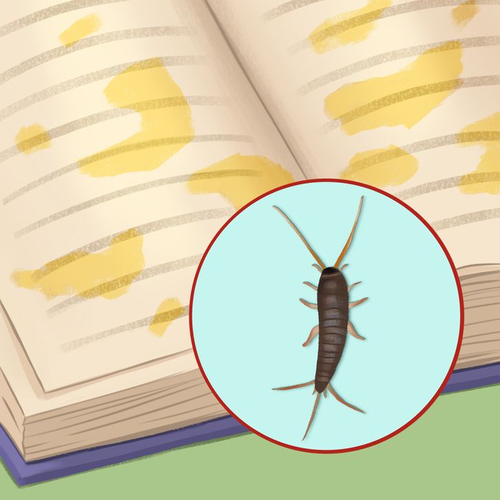 Ovo bi mogao biti znak zaraze srebrnom ribicom. Ovi mali kukci hrane se šećerom i škrobom papira, pa vidite žute mrlje koje su za sobom ostavile u knjigama, dokumentima, tapetama i tako dalje. Osim hemijskih otopina, možete isprobati i prirodne repelente kao što su strugotine cedrovine, cedrovo ulje i voda, kao i cimet.