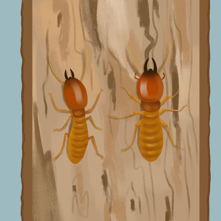 Ovo je još jedan znak da se u domu nalaze termiti. Ovi kukci žive neposredno ispod površine drveta, zbog čega boja nema za što se držati, pa se tanki sloj boje počinje ljuštiti. Osim toga, termitima je potrebna vlaga, a to je još jedan od razloga oštećenja na obojanom drvu. Postoji mnogo načina da se riješite ovih insekata, ali bolje je to prepustiti profesionalcima.