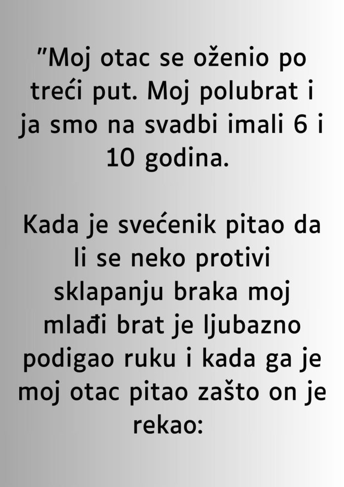 “Moj otac se oženio po treći put. Moj polubrat i ja smo na svadbi imali 6 i 10 godina.