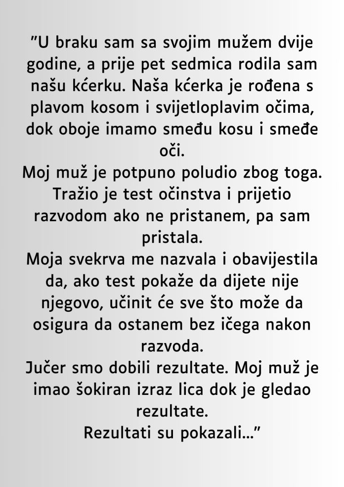 Moja svekrva me nazvala i obavijestila da, ako test pokaže da dijete nije njegovo, učinit će sve što može da osigura da ostanem bez ičega nakon razvoda.