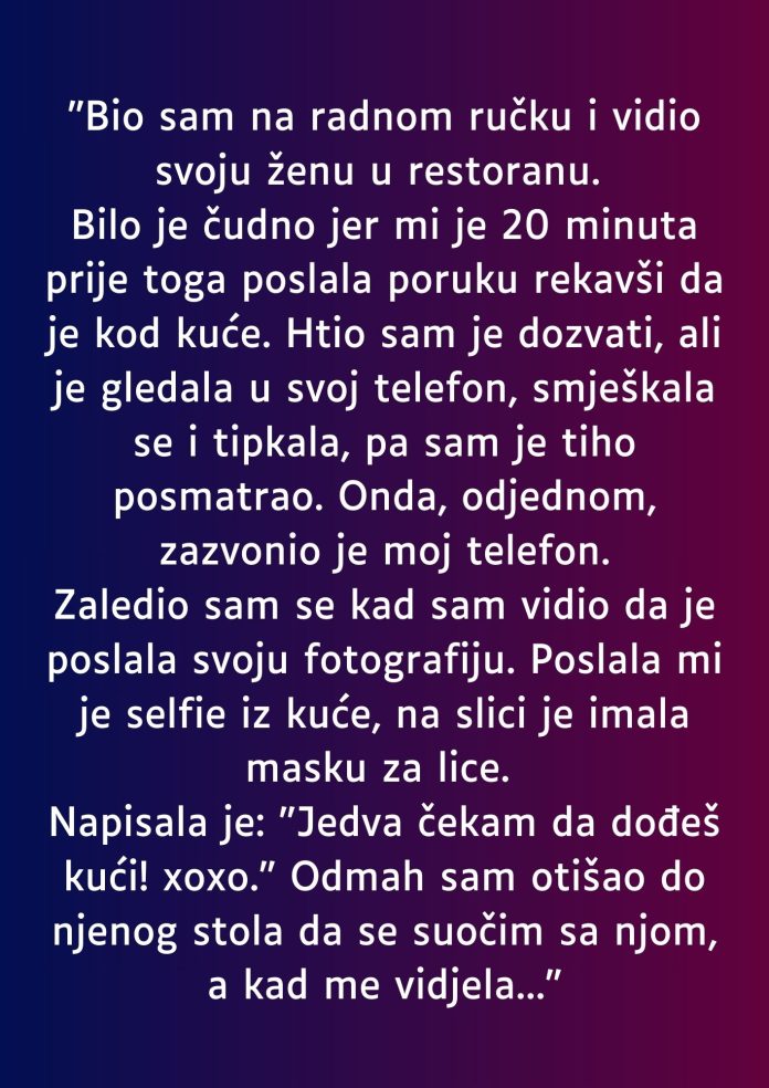 “Bio sam na radnom ručku i vidio svoju ženu u restoranu…”