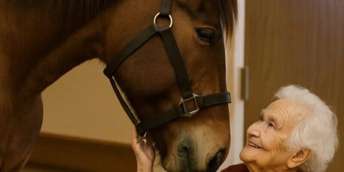 Žena se polako uputila u sobu za posjete. Nije mogla ni zamisliti što je tamo čeka. I odjednom — pravi šok. U sredini prostorije stajao je veliki smeđi konj s gustom, raskošnom grivom.