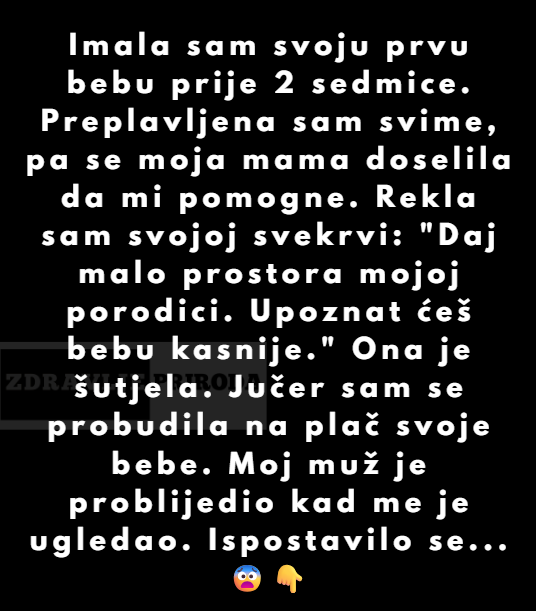 Juče sam spavala kada je moja mama dotrčala u panici. Probudila sam se na plač bebe i moj muž je problijedio kad me je ugledao u dnevnoj sobi. Užasnuta, otkrila sam da je 9 članova muževe porodice došlo u našu kuću, a niko mi ništa nije rekao. Ispostavilo se da je moj muž bio taj koji je pozvao svoju mamu, tatu, braću, sestre, pa čak i nećake.