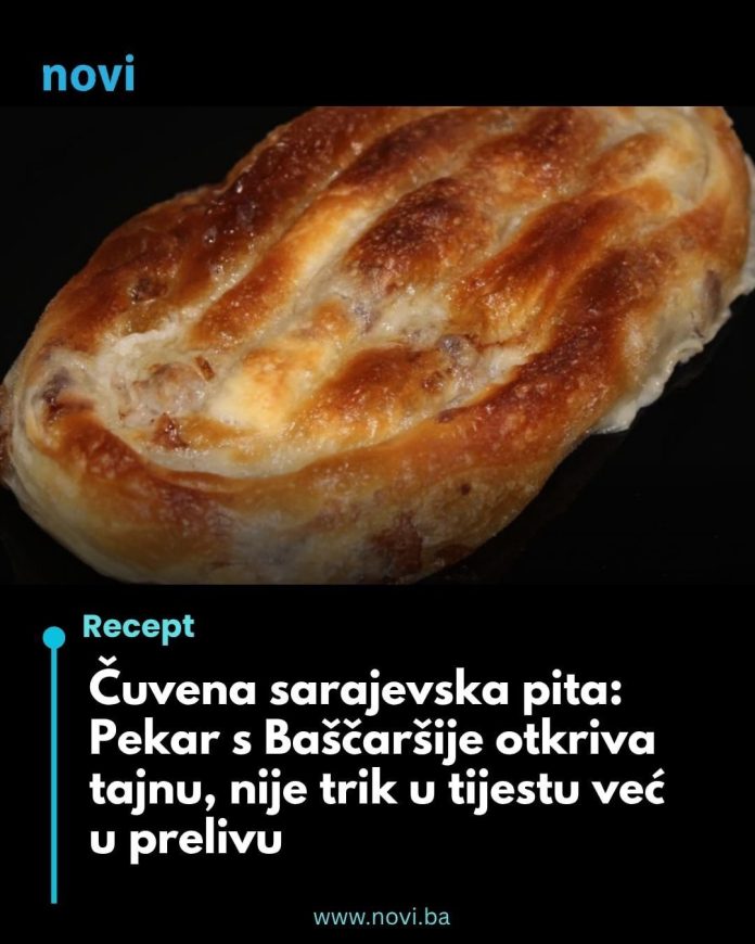 Jedan čuveni pekar sa Baščaršije, poznat po pitama koje se prodaju odmah nakon što izađu iz rerne, otkriva tajnu savršene pite: nije riječ samo o tijestu, već i o posebnom prelivu kojim se pita zaliva nakon pečenja, dovoljno da ostane sočna, a da spolja ostane hrskava.