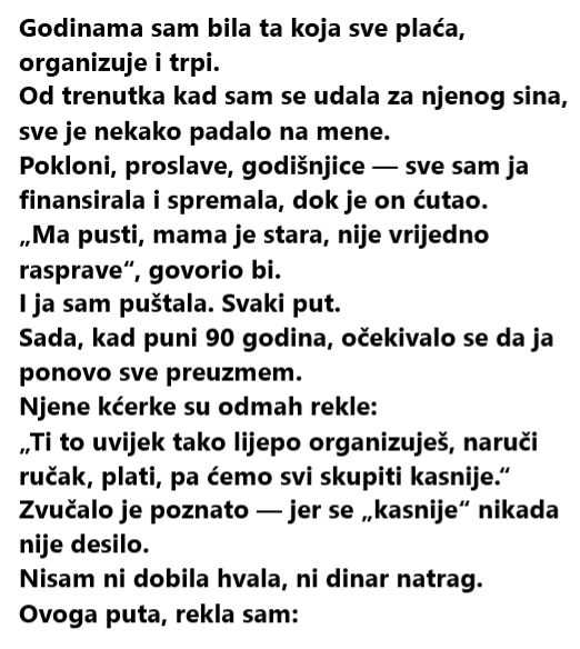 Godinama sam bila ta koja sve plaća, organizuje i trpi.