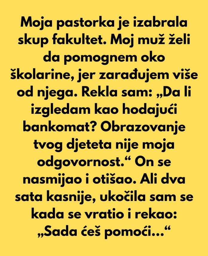 „Odbijam da platim školarinu svojoj pastorki, nisam njen lični bankomat.“