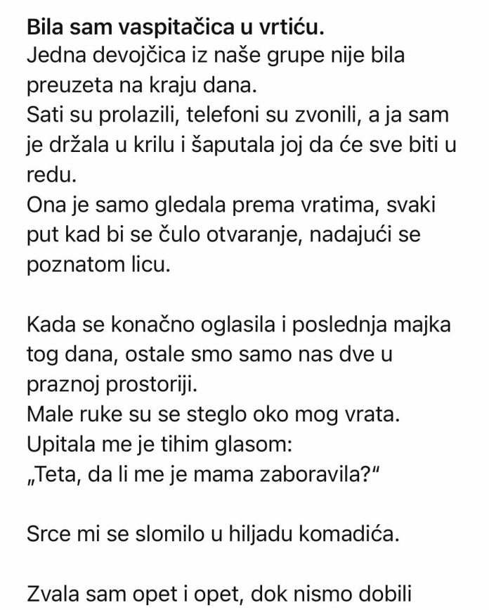 Jedna devojčica iz naše grupe nije bila preuzeta na kraju dana.