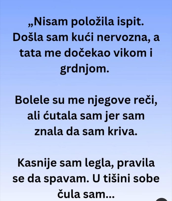 „Nisam položila ispit. Došla sam kući nervozna, a tata me dočekao vikom i grdnjom. Bolele su me njegove reči, ali ćutala sam jer sam znala da sam kriva.