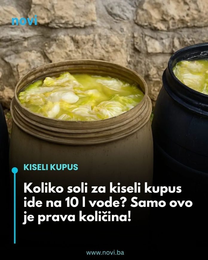 Ako ove godine prvi put pravite kiseli kupus, ili ste iskusni ali niste sigurni u tačnu mjeru soli, pravilo je jednostavno: na 10 litara vode ide 400 g soli. Neko voli slaniji, neko blaži, ali ovo je optimalna količina.