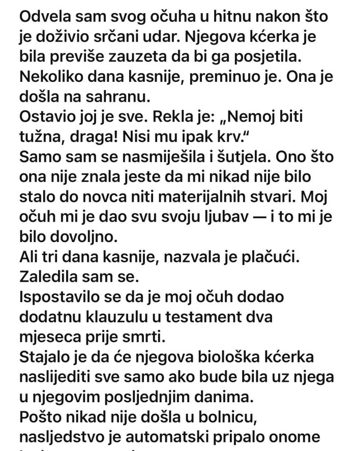 Stajalo je da će njegova biološka kćerka naslijediti sve samo ako bude bila uz njega u njegovim posljednjim danima.