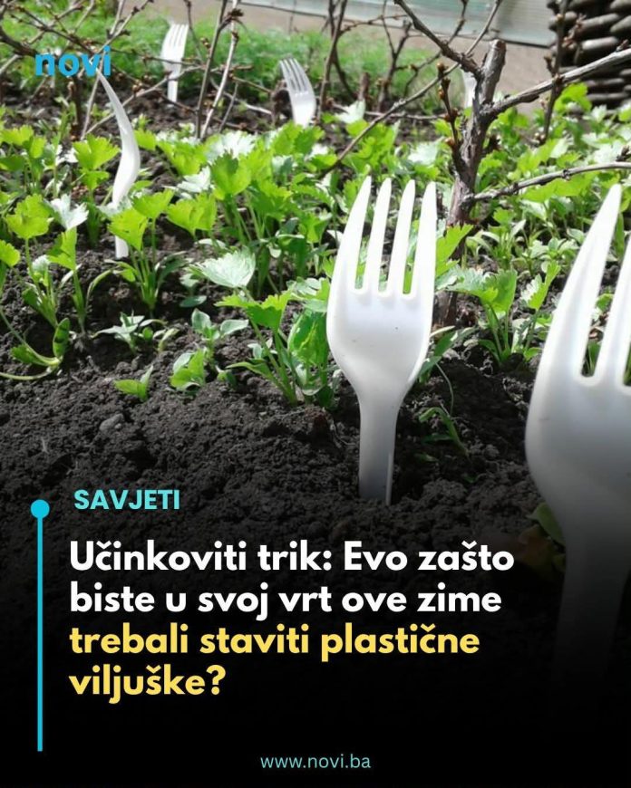 Međutim, postoje načini da odvratite nepozvane goste od ulaska u vaše vrtne parcele, a ova metoda jednostavno uključuje plastične vilice. Postavljanje plastičnih vilica u tlo vašeg povrtnjaka može pomoći u sprječavanju štetnika, uključujući miševe, vjeverice, zečeve i lisice, da se dočepaju i unište vaše usjeve ove zime. Prema Ideal Homeu, plastični pribor stvara fizičku barijeru oko biljaka, zbog čega je određenim nametnicima neugodno prijeći preko nje, pa izbjegavaju to područje, piše Daily Express.