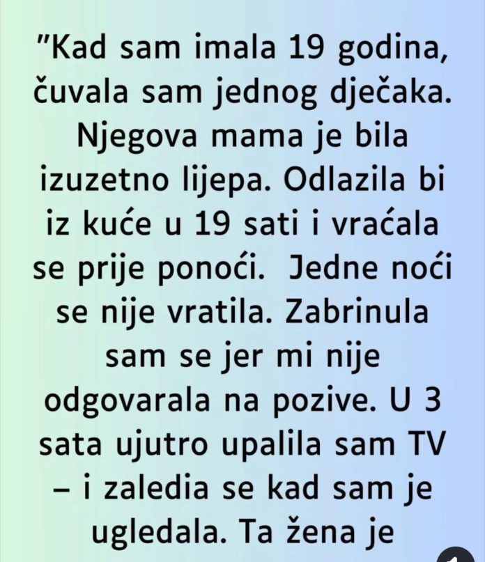 “Kad sam imala 19 godina, čuvala sam jednog dječaka. Njegova mama je bila izuzetno lijepa. Odlazila bi iz kuće u 19 sati i vraćala se prije ponoći.