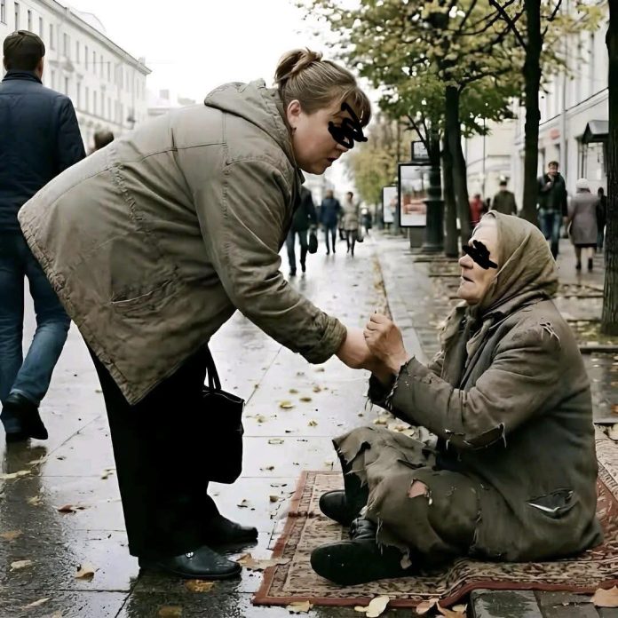 Žena je svakog dana ostavljala novac starici, ali jednog dana, dok se saginjala da ga preda, starica joj je uhvatila ruku: „Učinila si toliko za mene… nemoj danas ići kući.“
