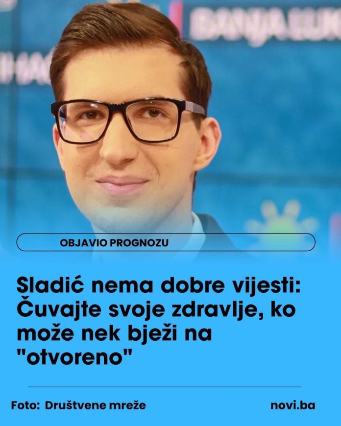 Bh. meteorolog Nedim Sladić na društvenim mrežama objavio je prognozu vremena za nadolazeći period.
