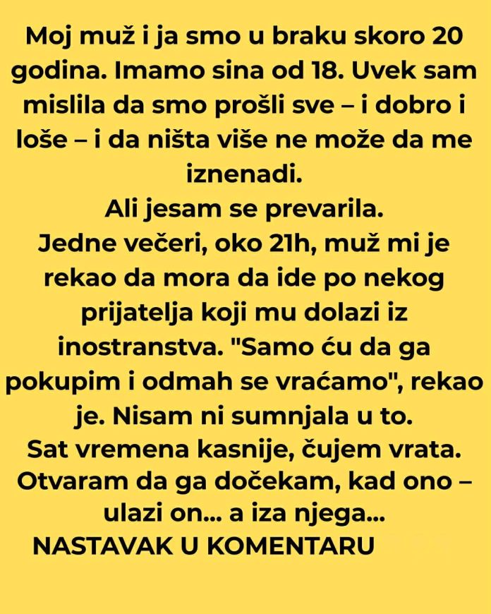 Moj muž i ja smo u braku skoro 20 godina. Imamo sina od 18. Uvek sam mislila da smo prošli sve – i dobro i loše – i da ništa više ne može da me iznenadi.
