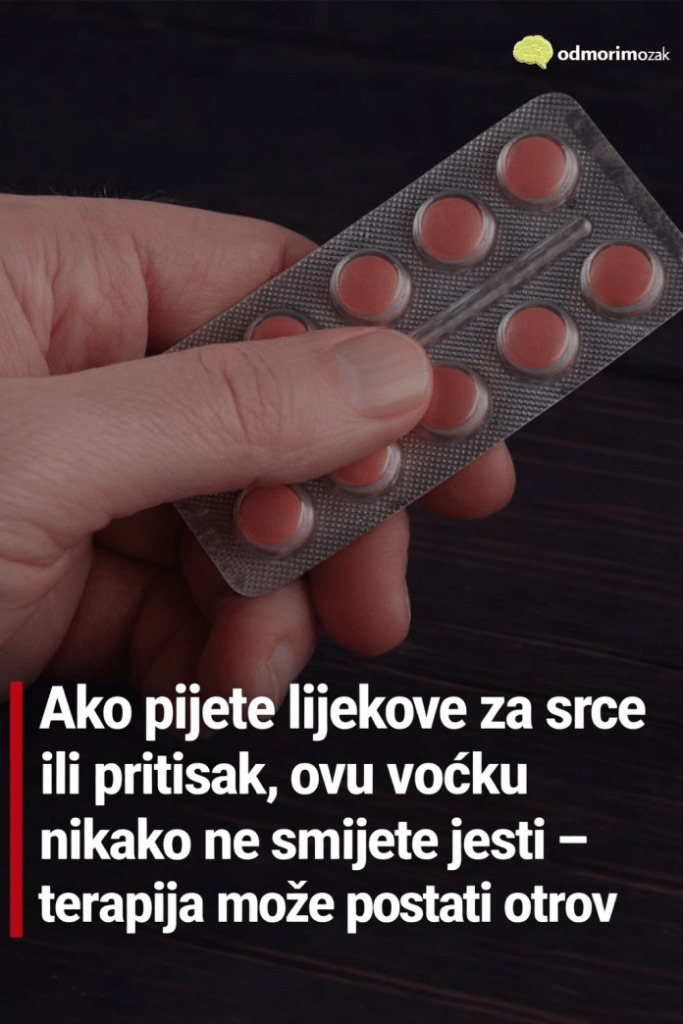 Grejp jeste zdrava voćka, ali nije bezazlena za svakoga. Kada se kombinuje sa određenim lijekovima, posebno onima za srce i krvni pritisak, može promijeniti njihovo djelovanje na način koji nije siguran.