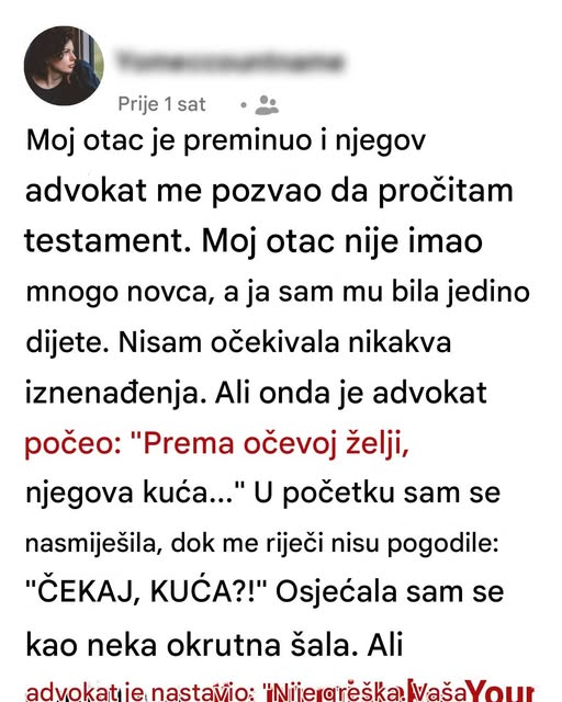 Isprva sam se nasmejala. Ipak, ubrzo su mi reči udarile u srce—ČEK, KUĆA?! Nikada nisam zamišljala da je ostavio nešto vredno, a kamoli nešto toliko značajno.