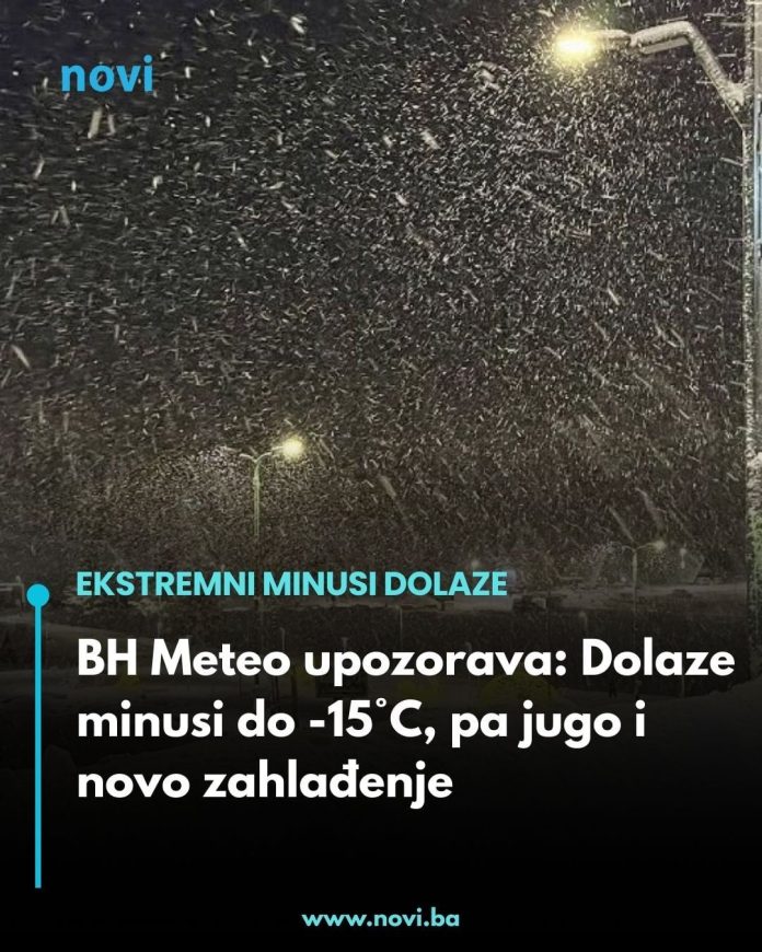 Prema BH Meteu, u naredne dvije noći temperature će lokalno padati i do –15°C, a u mrazištima i niže.
