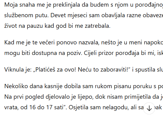 Otišla sam ranije i plakala u autu. Stalno se pitam da li sam kažnjena zato što sam odbila biti u porođajnoj sali ili je ovo oduvijek bio njen plan da me „stavi na moje mjesto“. Volim svog sina i unuče, ali se osjećam poniženo, skrajnuto i duboko povrijeđeno.