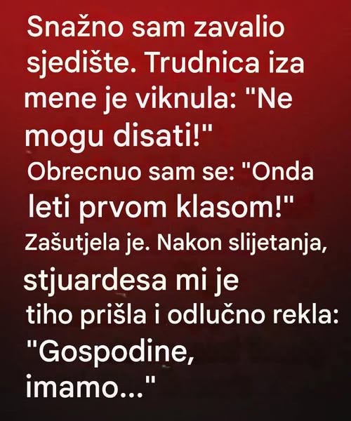 „Gospodine, dama iza vas ranije je imala poteškoća s disanjem. Samo da znate — mali postupci, poput naslanjanja sjedala, mogu puno značiti nekome u njenom stanju.“