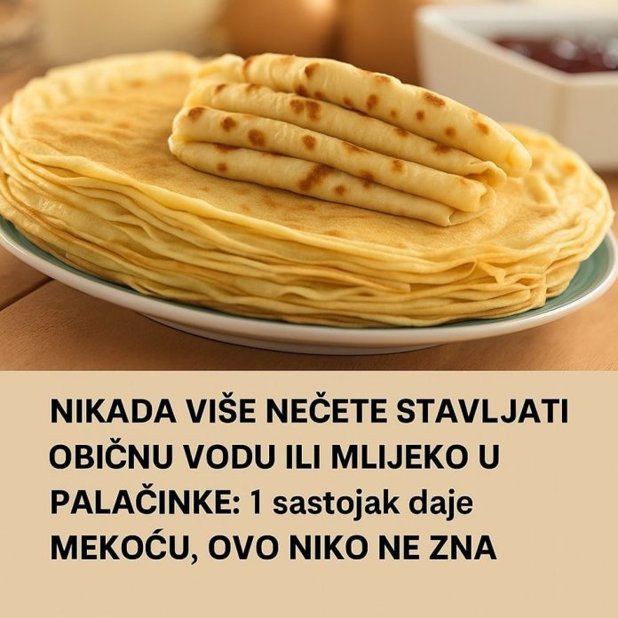 Kada se jedna strana palačinke ispeče, prevrnuti je na drugu stranu. Prije pečenja svake palačinke dodati u tiganj nekoliko kapi ulja.