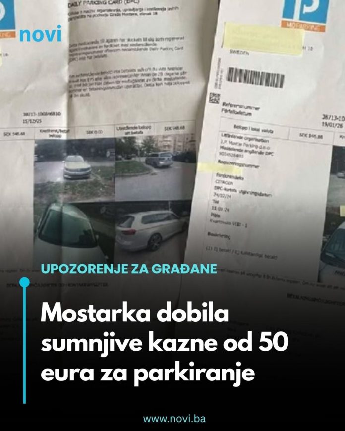 Građani Bosne i Hercegovine, koji imaju prebivalište ili vozila registrovana van zemlje, upozoravaju na, kako navode, sumnjive parking-kazne koje im pristižu iz inostranstva, a koje se dovode u vezu s firmom Mo Parking iz Mostara.