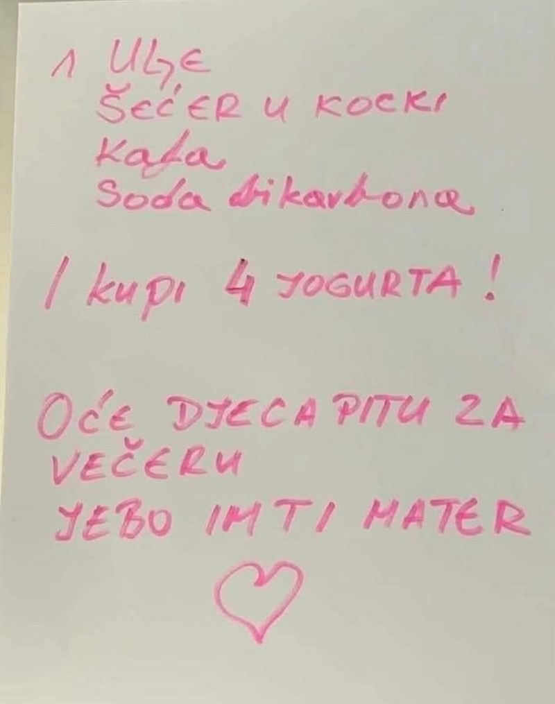 Žena je mužu napisala spisak za kupovinu i na kraju dodala urnebesnu opasku, fotka je hit u regiji