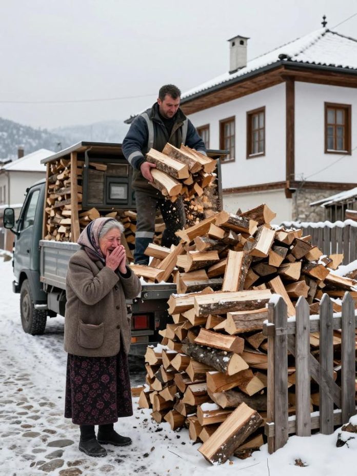 Ujutro je pred njenu kapiju stigao veliki kamion, a ne mali koji je očekivala. Radnici su bez riječi počeli da istovaraju drva, gomilu mnogo veću nego što je naručila. Srce joj je lupalo dok je gledala kako se brdo širi ispred kuće, znajući da to ne može platiti.