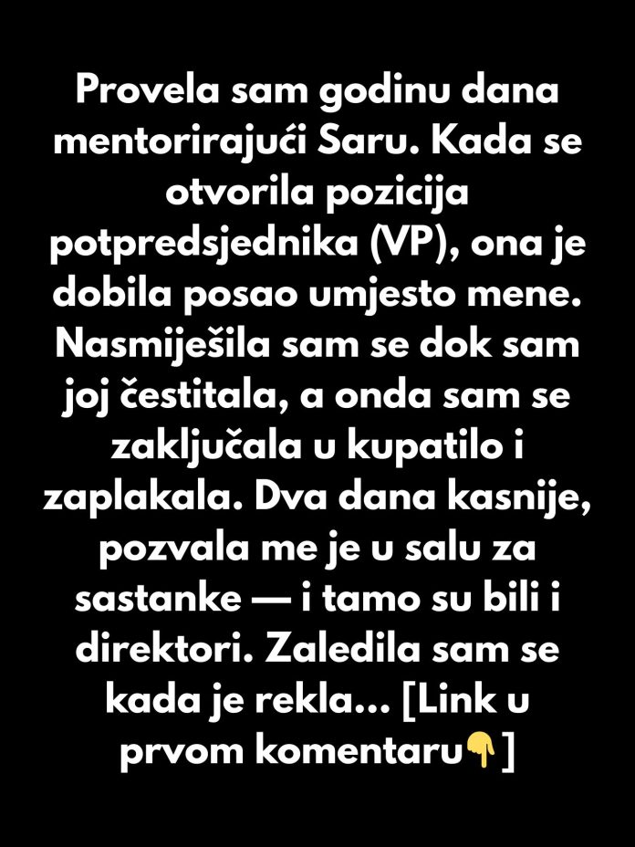 „Radimo reorganizaciju. Čestitamo — sada ste obje potpredsjednice.“