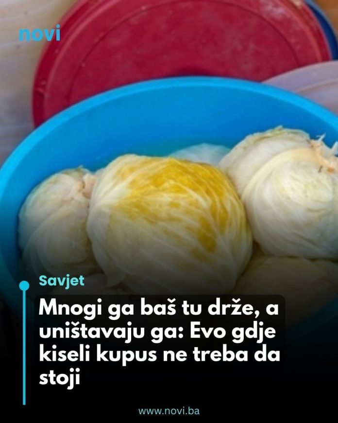 Kiseli kupus može kratko stajati na terasi samo ako je prostor zatvoren, dobro izolovan i temperatura ne padne ispod nule. Najsigurnije je čuvati ga u podrumu ili ostavi sa stabilnom temperaturom između 2 i 8 stepeni.