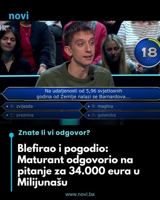 Blefirao i pogodio: Maturant odgovorio na pitanje za 34.000 eura u Milijunašu