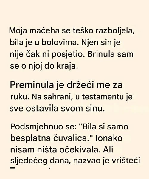 Međutim, već narednog dana dogodilo se nešto neočekivano. Njen sin me je pozvao — uznemiren, zbunjen i vidno potresen. Dok je pregledao stare kutije koje je njegova majka ostavila za sobom, pronašao je pismo.