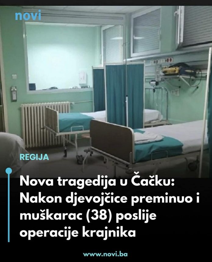 U Opštoj bolnici Čačak, u noći između 11. i 12. februara, muškarac star 38 godina preminuo je u postoperativnom toku, nakon operacije trećeg krajnika, saopštilo je Ministarstvo zdravlja Srbije.