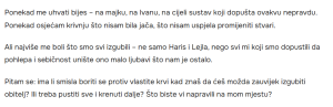 Osjetila sam kako mi krv vrije. “Najbolje za koga? Za tebe? Za Ivanu? A što je s Harisom i Lejlom? Oni su Edinova krv! Kako možeš biti tako hladna?”