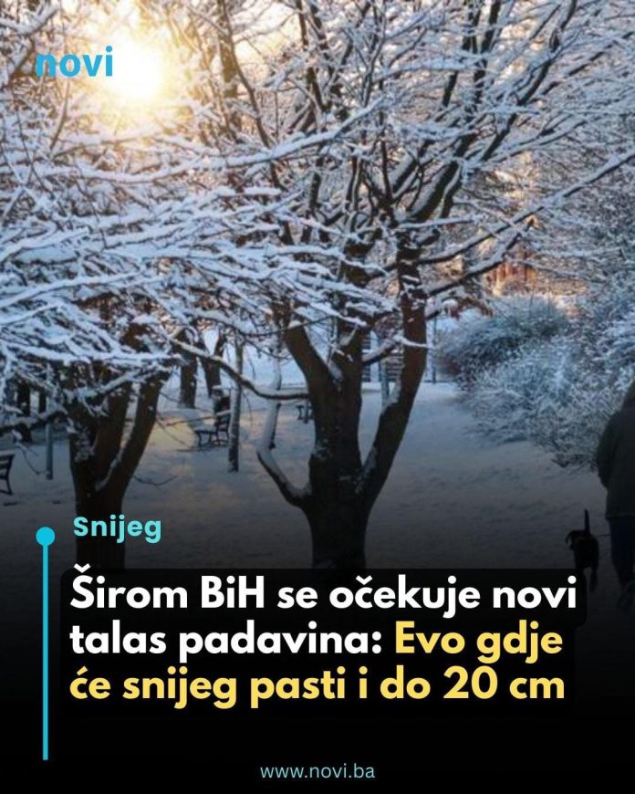 U našoj zemlji danas će biti pretežno oblačno vrijeme. U Bosni se očekuje kiša i susnježica, a u planinskim područjima snijeg. Visina novog snijega u planinskim područjima je od 10 do 20 cm.