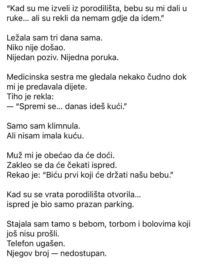 “Kad su me izveli iz porodilišta, bebu su mi dali u ruke… ali su rekli da nemam gdje da idem.”