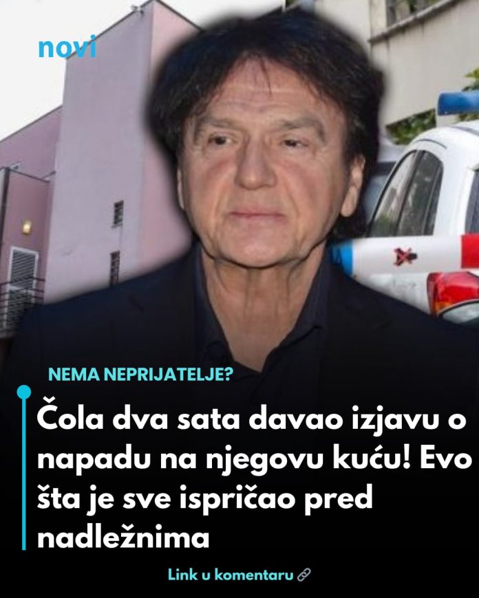 Zdravko Čolić je u policiji proveo gotovo dva sata dajući izjavu povodom incidenta u kojem je 3. februara oko pet sati ujutro na njegovu porodičnu kuću bačena bomba.