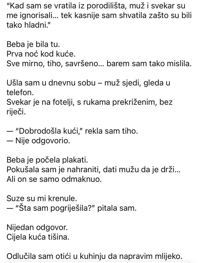 “Kad sam se vratila iz porodilišta, muž i svekar su me ignorisali… tek kasnije sam shvatila zašto su bili tako hladni.”
